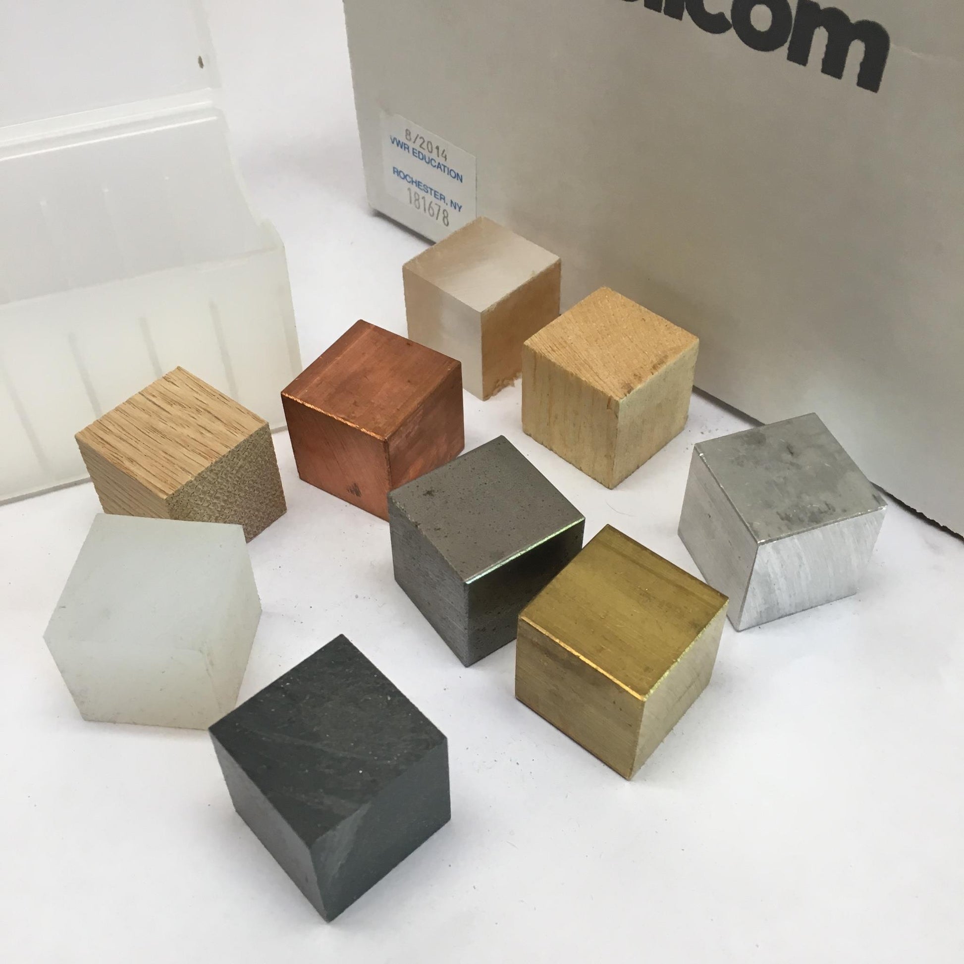 Ordering information: Lab includes Oak Block, Pine Block, Acrylic Block, Aluminum Block, Copper Block, Steel Block, Brass Block, PVC Block, Polypropylene Block, and Plastic Storage Box.