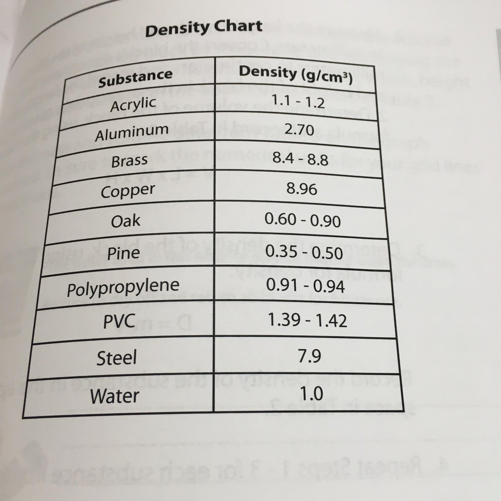 This lab consists of three data gathering activities using blocks of different substances. Students will use their knowledge of density to predict and then test which blocks will sink or float when placed in water and determine the mass, volume, and density of each block. Students will also investigate the relationship between the mass, volume, and density of a single substance. The students' understanding of these activities will allow them to learn the concept of density and see that it is an important physical property of any element or compound. This activity employs the Framework Science Standard PS1 (Matter and Its Interactions).